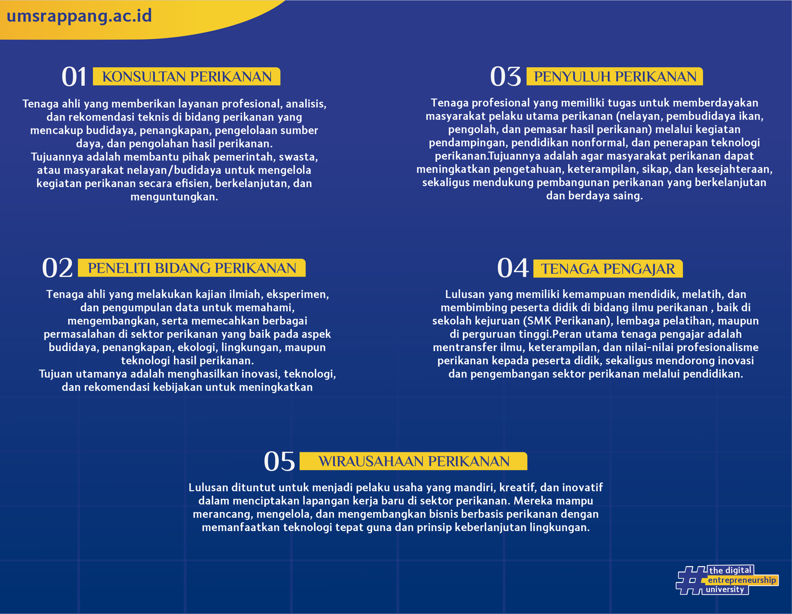 akademik, praktik lapangan, laboratorium, kewirausahaan perikanan, hingga