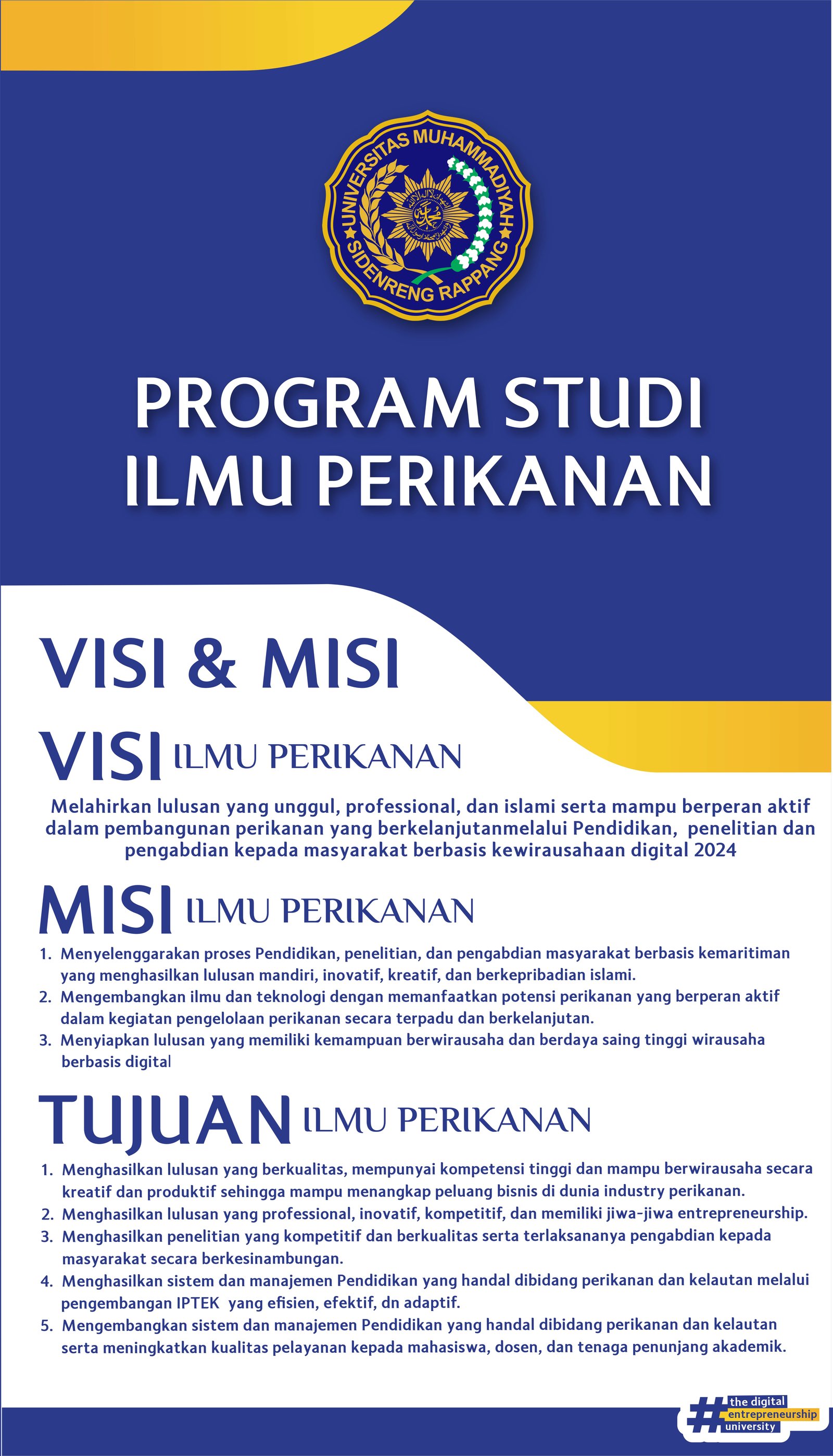 Melalui layanan akademik yang menyeluruh ini, Program Studi Perikanan berkomitmen menghasilkan lulusan yang memiliki pengetahuan, keterampilan, serta etika profesi, sehingga mampu bersaing secara global dan berkontribusi dalam pembangunan perikanan berkelanjutan.