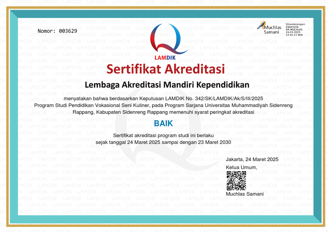 Akreditasi Pendidikan Vokasional Seni Kuliner